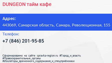 DUNGEON, тайм-кафе по адресу 443069, Самарская область, Самара, Революционная, 155 в дальнейшем Организация, размещена в следующих категориях: