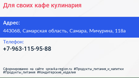 Для своих, кафе-кулинария по адресу 443068, Самарская область, Самара, Мичурина, 118а в дальнейшем Организация, размещена в следующих категориях: