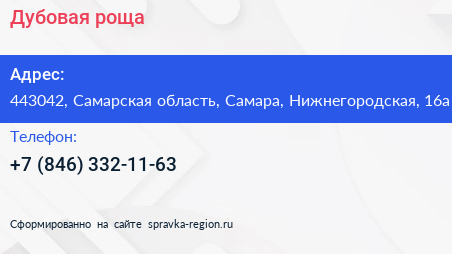 Дубовая роща по адресу 443042, Самарская область, Самара, Нижнегородская, 16а в дальнейшем Организация, размещена в следующих категориях: