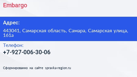 Embargo по адресу 443041, Самарская область, Самара, Самарская улица, 161а в дальнейшем Организация, размещена в следующих категориях: