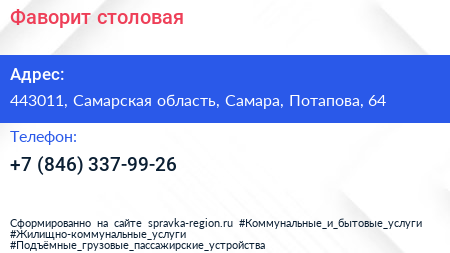 Фаворит, столовая по адресу 443011, Самарская область, Самара, Потапова, 64 в дальнейшем Организация, размещена в следующих категориях: