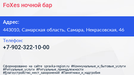 FoXes, ночной бар по адресу 443010, Самарская область, Самара, Некрасовская, 46 в дальнейшем Организация, размещена в следующих категориях: