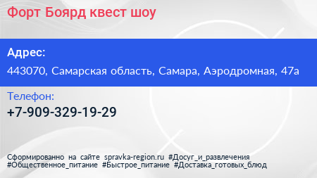 Форт-Боярд, квест-шоу по адресу 443070, Самарская область, Самара, Аэродромная, 47а в дальнейшем Организация, размещена в следующих категориях: