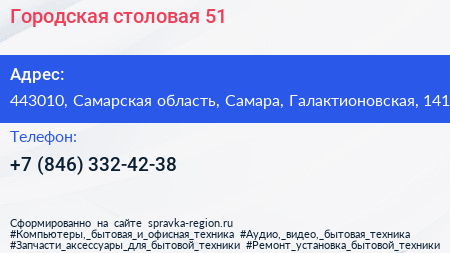 Городская столовая №51 по адресу 443010, Самарская область, Самара, Галактионовская, 141 в дальнейшем Организация, размещена в следующих категориях: