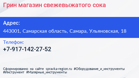 Грин, магазин свежевыжатого сока по адресу 443001, Самарская область, Самара, Ульяновская, 18 в дальнейшем Организация, размещена в следующих категориях: