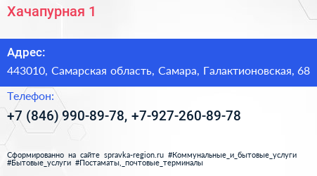 Хачапурная №1 по адресу 443010, Самарская область, Самара, Галактионовская, 68 в дальнейшем Организация, размещена в следующих категориях: