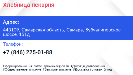 Хлебница, пекарня по адресу 443109, Самарская область, Самара, Зубчаниновское шоссе, 151д в дальнейшем Организация, размещена в следующих категориях: