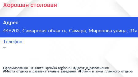 Хорошая столовая по адресу 446202, Самарская область, Самара, Миронова улица, 31а в дальнейшем Организация, размещена в следующих категориях: