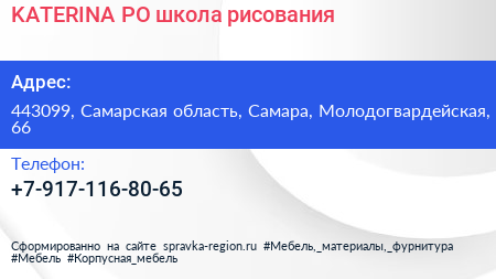 KATERINA PO, школа рисования по адресу 443099, Самарская область, Самара, Молодогвардейская, 66 в дальнейшем Организация, размещена в следующих категориях: