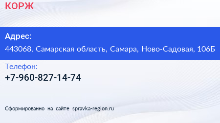 КОРЖ по адресу 443068, Самарская область, Самара, Ново-Садовая, 106Б в дальнейшем Организация, размещена в следующих категориях: