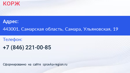 КОРЖ по адресу 443001, Самарская область, Самара, Ульяновская, 19 в дальнейшем Организация, размещена в следующих категориях: