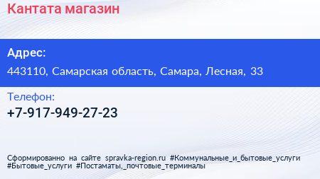 Кантата, магазин по адресу 443110, Самарская область, Самара, Лесная, 33 в дальнейшем Организация, размещена в следующих категориях: