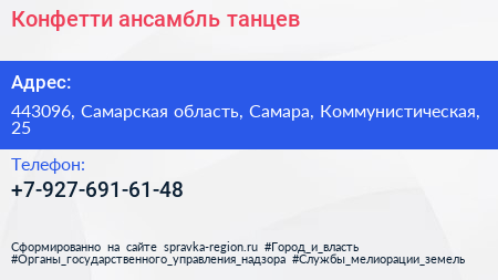 Конфетти, ансамбль танцев по адресу 443096, Самарская область, Самара, Коммунистическая, 25 в дальнейшем Организация, размещена в следующих категориях: