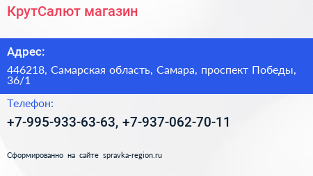 КрутСалют, магазин по адресу 446218, Самарская область, Самара, проспект Победы, 36/1 в дальнейшем Организация, размещена в следующих категориях:
