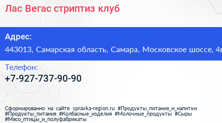 Лас Вегас, стриптиз-клуб по адресу 443013, Самарская область, Самара, Московское шоссе, 4в в дальнейшем Организация, размещена в следующих категориях: