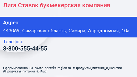 Лига Ставок, букмекерская компания по адресу 443069, Самарская область, Самара, Аэродромная, 10а в дальнейшем Организация, размещена в следующих категориях: