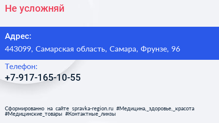 Не усложняй по адресу 443099, Самарская область, Самара, Фрунзе, 96 в дальнейшем Организация, размещена в следующих категориях: