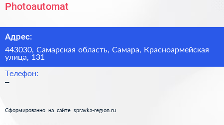 Photoautomat по адресу 443030, Самарская область, Самара, Красноармейская улица, 131 в дальнейшем Организация, размещена в следующих категориях: