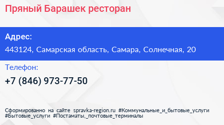 Пряный Барашек, ресторан по адресу 443124, Самарская область, Самара, Солнечная, 20 в дальнейшем Организация, размещена в следующих категориях:
