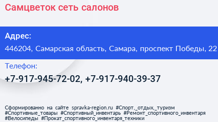 Самцветок, сеть салонов по адресу 446204, Самарская область, Самара, проспект Победы, 22 в дальнейшем Организация, размещена в следующих категориях: