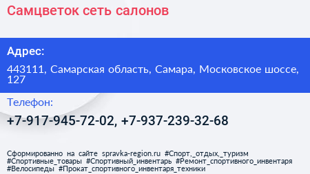 Самцветок, сеть салонов по адресу 443111, Самарская область, Самара, Московское шоссе, 127 в дальнейшем Организация, размещена в следующих категориях: