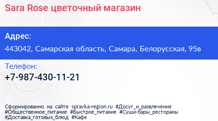 Sara Rose, цветочный магазин по адресу 443042, Самарская область, Самара, Белорусская, 95в в дальнейшем Организация, размещена в следующих категориях: