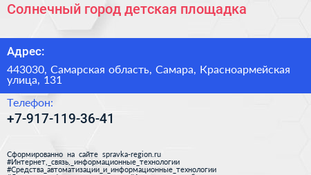 Солнечный город, детская площадка по адресу 443030, Самарская область, Самара, Красноармейская улица, 131 в дальнейшем Организация, размещена в следующих категориях: