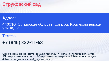 Струковский сад по адресу 443010, Самарская область, Самара, Красноармейская улица, 2а в дальнейшем Организация, размещена в следующих категориях: