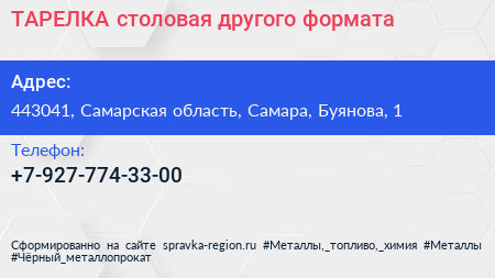 ТАРЕЛКА, столовая другого формата по адресу 443041, Самарская область, Самара, Буянова, 1 в дальнейшем Организация, размещена в следующих категориях: