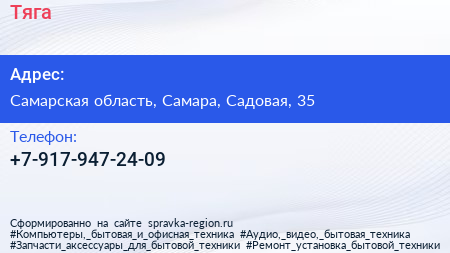 Тяга по адресу Самарская область, Самара, Садовая, 35 в дальнейшем Организация, размещена в следующих категориях: