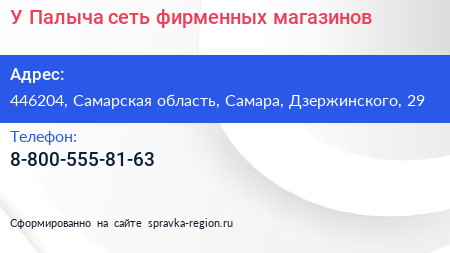 У Палыча, сеть фирменных магазинов по адресу 446204, Самарская область, Самара, Дзержинского, 29 в дальнейшем Организация, размещена в следующих категориях: