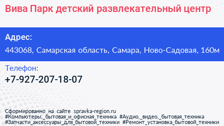 Вива Парк, детский развлекательный центр по адресу 443068, Самарская область, Самара, Ново-Садовая, 160м в дальнейшем Организация, размещена в следующих категориях:
