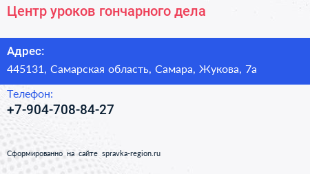 Центр уроков гончарного дела по адресу 445131, Самарская область, Самара, Жукова, 7а в дальнейшем Организация, размещена в следующих категориях: