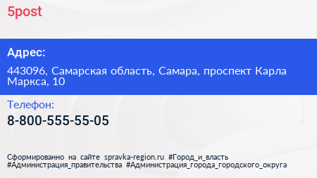 5post по адресу 443096, Самарская область, Самара, проспект Карла Маркса, 10 в дальнейшем Организация, размещена в следующих категориях: