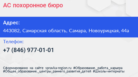 АС, похоронное бюро по адресу 443082, Самарская область, Самара, Новоурицкая, 44а в дальнейшем Организация, размещена в следующих категориях: