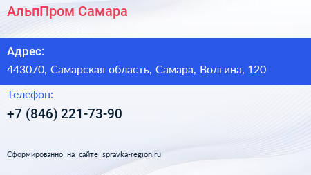 АльпПром Самара по адресу 443070, Самарская область, Самара, Волгина, 120 в дальнейшем Организация, размещена в следующих категориях:
