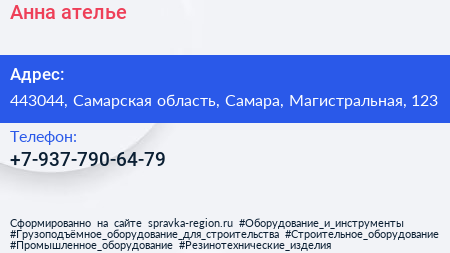 Анна, ателье по адресу 443044, Самарская область, Самара, Магистральная, 123 в дальнейшем Организация, размещена в следующих категориях:
