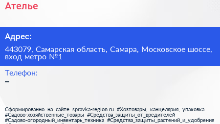 Ателье по адресу 443079, Самарская область, Самара, Московское шоссе, вход метро №1 в дальнейшем Организация, размещена в следующих категориях: