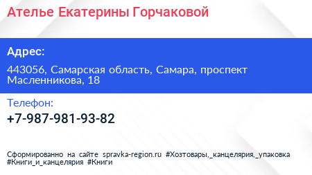 Ателье Екатерины Горчаковой по адресу 443056, Самарская область, Самара, проспект Масленникова, 18 в дальнейшем Организация, размещена в следующих категориях:
