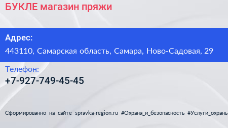 БУКЛЕ, магазин пряжи по адресу 443110, Самарская область, Самара, Ново-Садовая, 29 в дальнейшем Организация, размещена в следующих категориях: