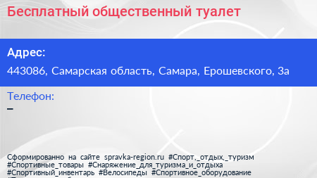 Бесплатный общественный туалет по адресу 443086, Самарская область, Самара, Ерошевского, 3а в дальнейшем Организация, размещена в следующих категориях: