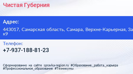 Чистая Губерния по адресу 443017, Самарская область, Самара, Верхне-Карьерная, 3а к9 в дальнейшем Организация, размещена в следующих категориях: