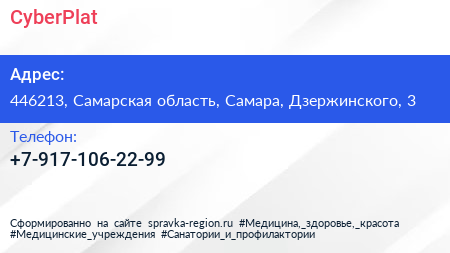 CyberPlat по адресу 446213, Самарская область, Самара, Дзержинского, 3 в дальнейшем Организация, размещена в следующих категориях: