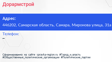 Дорармстрой по адресу 446202, Самарская область, Самара, Миронова улица, 31а в дальнейшем Организация, размещена в следующих категориях: