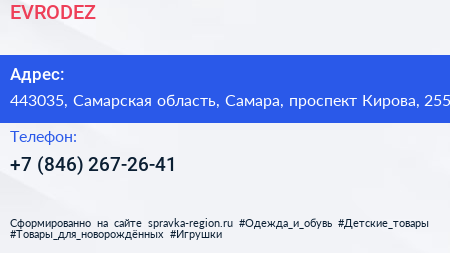 EVRODEZ по адресу 443035, Самарская область, Самара, проспект Кирова, 255 в дальнейшем Организация, размещена в следующих категориях: