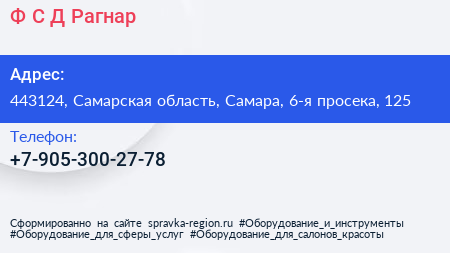Ф.С.Д. Рагнар по адресу 443124, Самарская область, Самара, 6-я просека, 125 в дальнейшем Организация, размещена в следующих категориях: