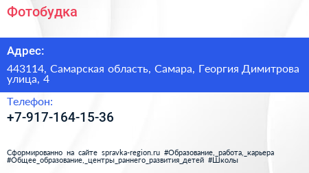 Фотобудка по адресу 443114, Самарская область, Самара, Георгия Димитрова улица, 4 в дальнейшем Организация, размещена в следующих категориях: