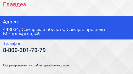Главдез по адресу 443034, Самарская область, Самара, проспект Металлургов, 46 в дальнейшем Организация, размещена в следующих категориях: