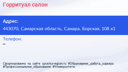 Горритуал, салон по адресу 443070, Самарская область, Самара, Борская, 108 к1 в дальнейшем Организация, размещена в следующих категориях: