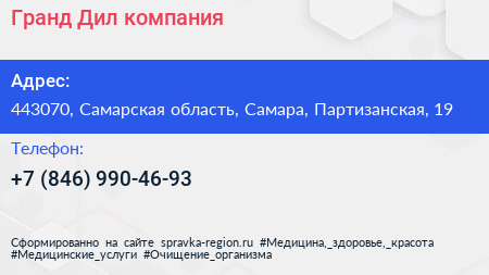 Гранд Дил, компания по адресу 443070, Самарская область, Самара, Партизанская, 19 в дальнейшем Организация, размещена в следующих категориях: